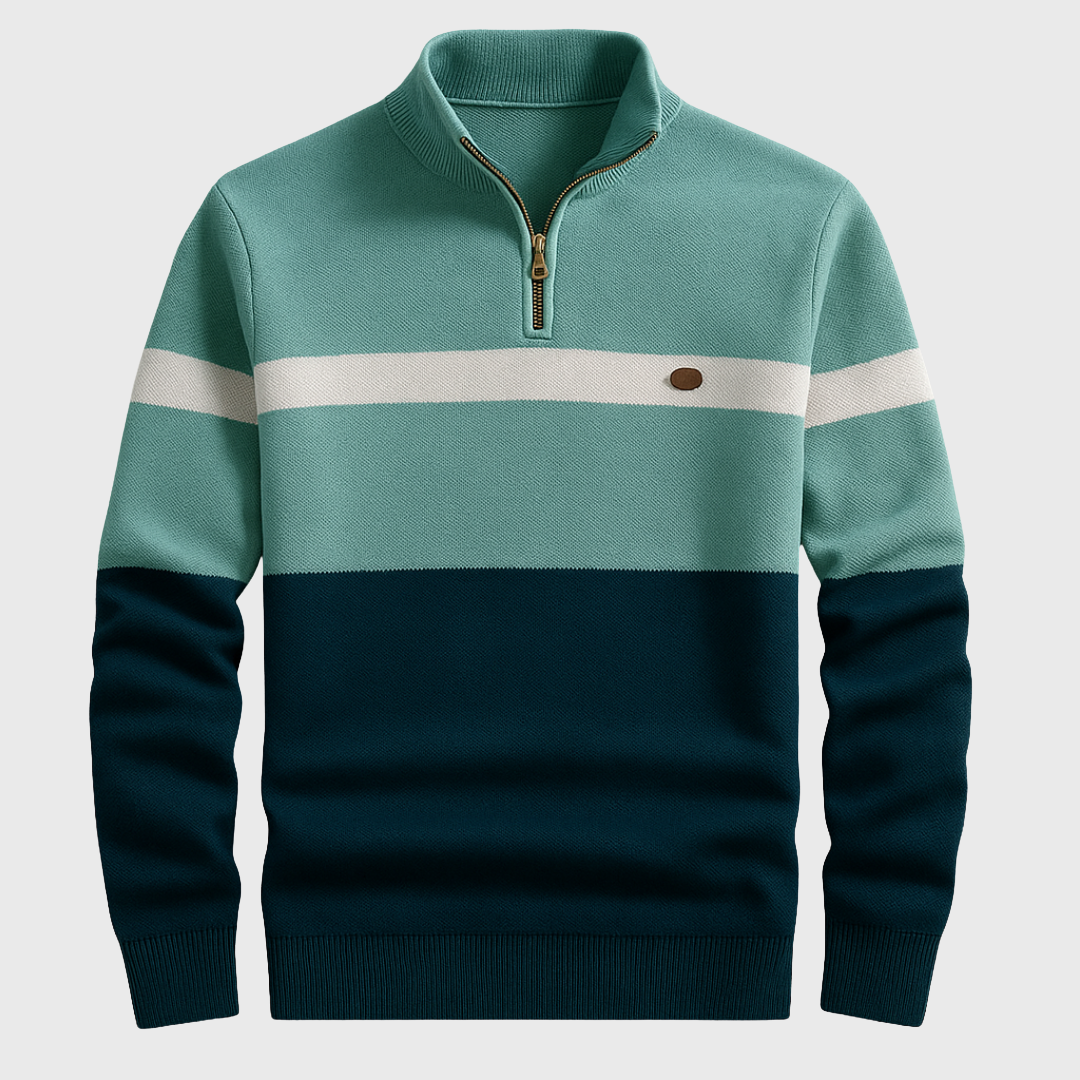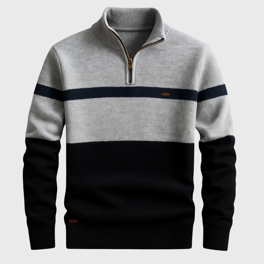 Този пуловер съчетава елегантност и комфорт в една универсална дреха, перфектна за всякакъв повод. Неговият модерен дизайн със структурирана кройка и цип на яката придава едновременно изискан и непринуден вид. Идеален за хора, които ценят стила и практичността в ежедневието – правилният избор, за да подчертаете личността си с вкус.